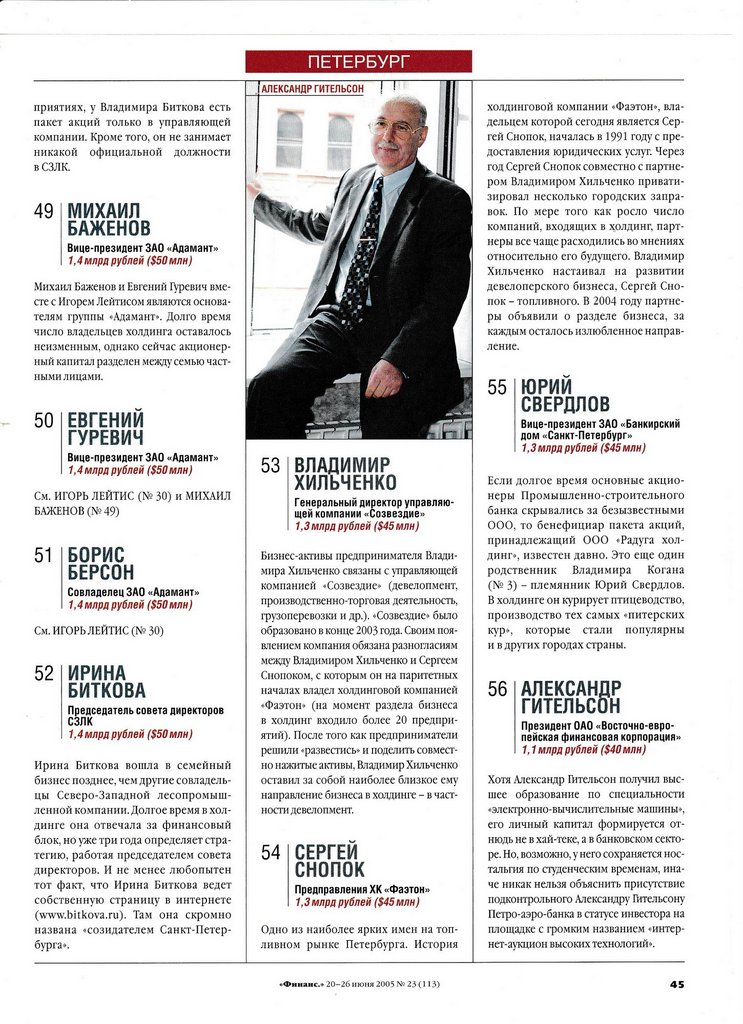 56. АЛЕКСАНДР ГИТЕЛЬСОН Президент ОАО «Восточно-европейская финансовая корпорация»